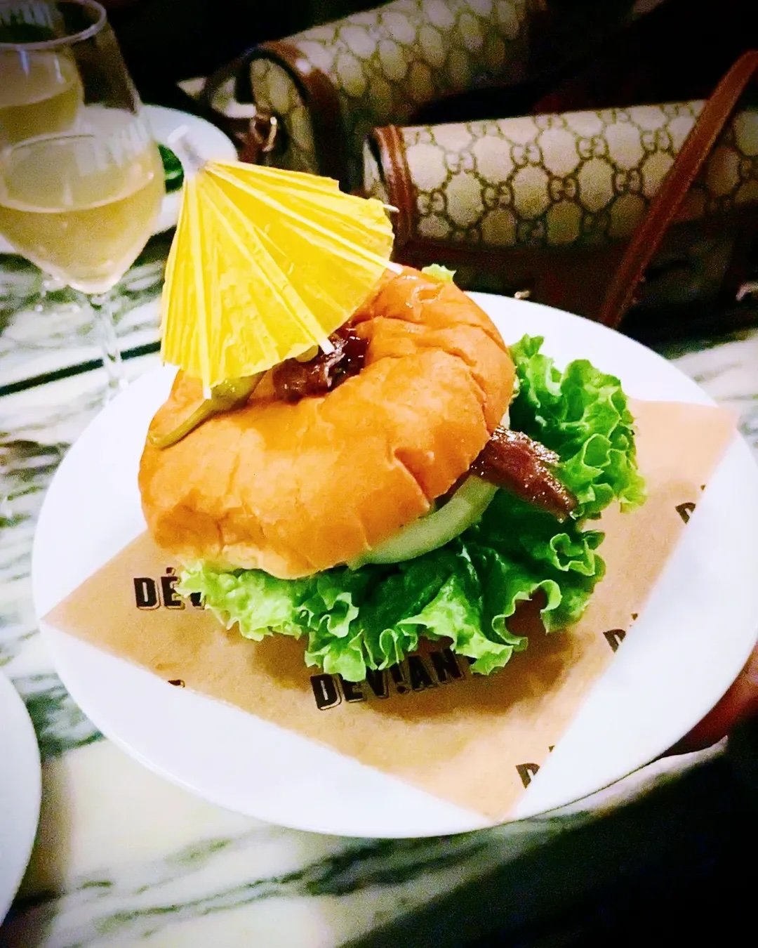Ce petit parasol en papier, je l’ai d’abord aperçu au feu restaurant Goguette, planté sur son iconique “lotte-Chocapic”. Je l’ai vu, aussi, chez les chefs Zac Gannat ou Loïck Tonnoir, qui le glissaient, eux, sur un ris de veau surmonté d’anchois ou un bun de pied de cochon et piquillos. Et peut-être même, si je me souviens bien, chez Thomas Coupeau, à Pluto, ou Antonin Girard, à Pantobaguette.